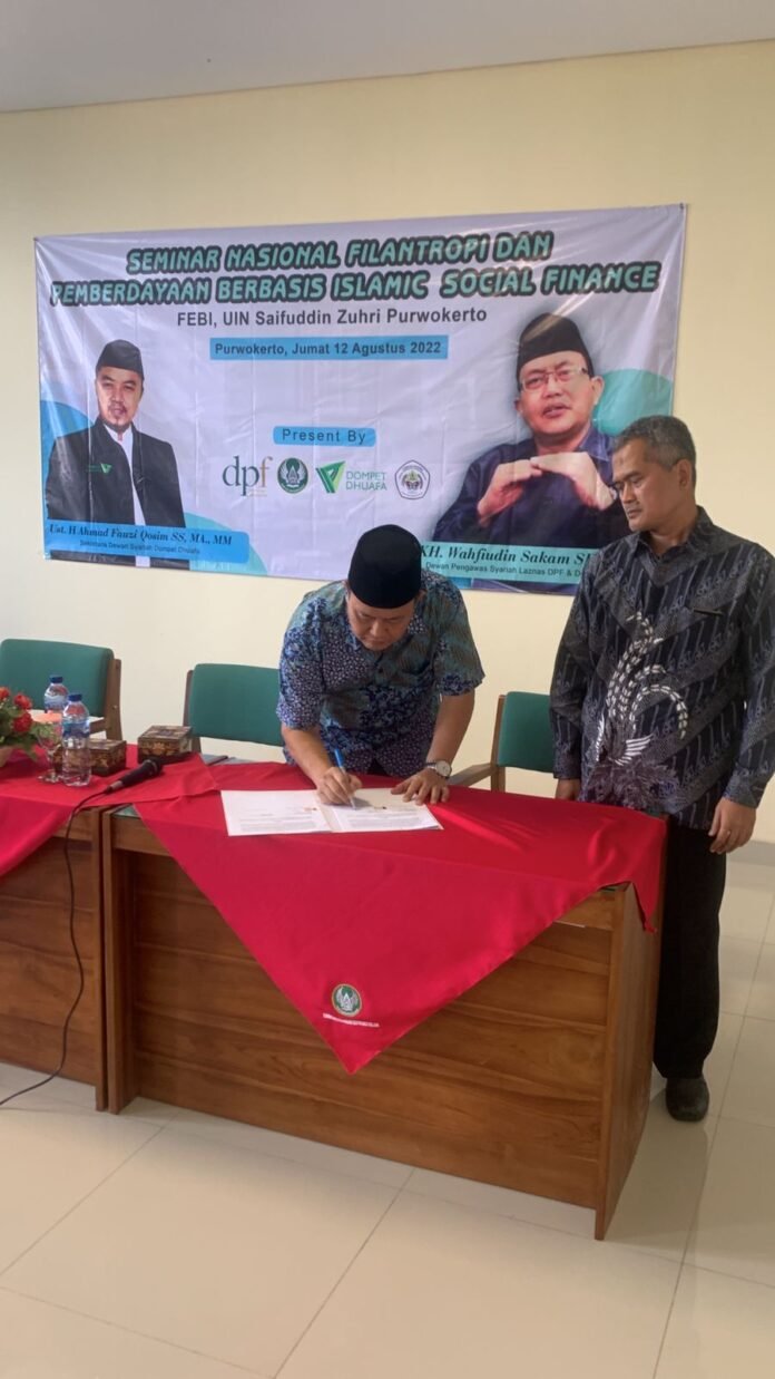 Seminar ini juga menjadi momentum penandatanganan kerjasama antara LAZNAS DPF dengan UIN Saizu Purwokerto di bidang pendidikan, penelitan dan pemberdayaan masyarakat. Kerja sama ini dianggap sudah sejalan dengan konsep pentahelix dalam upaya percepatan pembangunan di tengah-tengah masyarakat. Selain itu, UIN Saizu Purwokerto sendiri, khususnya di Fakultas Ekonomi dan Bisnis Islam, memiliki program studi manajemen wakaf dan zakat. Tentu sangat besar harapannya untuk lahir dari program studi dari salah satu kampus besar Islam di Jawa Tengah ini para amil dan nazir yang profesional *