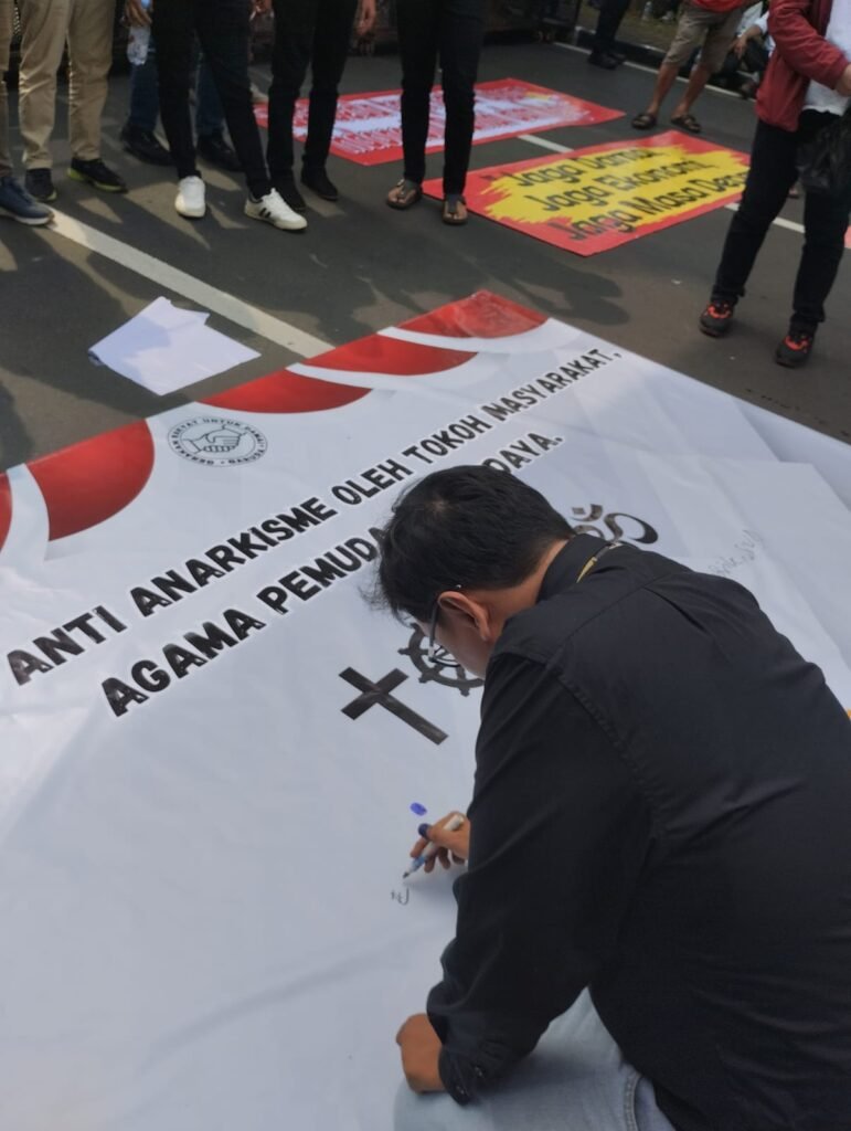 aksi ini merupakan gabungan dari mahasiswa, ormas Islam, dan tokoh lintas agama Katolik, Hindu, Buddha, dan Kristen. Mereka bersama-sama menyuarakan pesan damai dan persatuan dalam bingkai keberagaman.