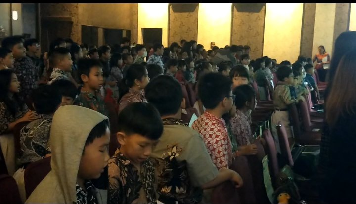 Sebelum acara dimulai, seluruh siswa SD Pancaran Berkat memulai kegiatan dengan doa dan menyanyikan lagu Indonesia Raya.