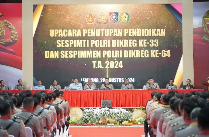 ACTUALNEWS.ID, Jakarta – Kapolri Jenderal Polisi Drs. Listyo Sigit Prabowo menutup pendidikan Sespimti Dikreg ke-33 dan Sespimen Dikreg ke-64 Tahun Ajaran 2024. Turut hadir dalam acara sejumlah pejabat utama Mabes Polri dan tentunya Kepala SSP Lemdiklat Polri Irjen. Pol. Chrysnanda Dwilaksana.