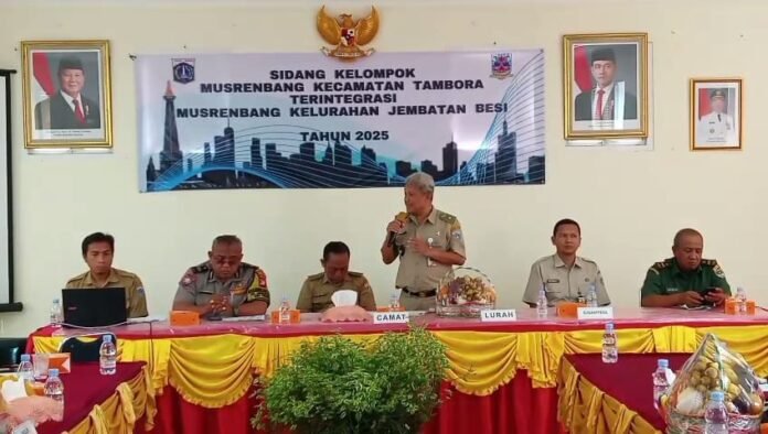 ACTUALNEWS.id – Jakarta Barat, Pemerintah Kelurahan Jembatan Besi Kecamatan Tambora Jakarta – Barat menggelar Sidang Kelompok Musyawarah Perencanaan Pembangunan (Musrenbang) Terintegrasi Tahun 2025 sebagai langkah strategis dalam menyusun rencana Pembangunan yang partisipatif dan inklusif, namun sebelumnya secara bersama para hadirin menyanyikan lagu Kebangsaan Indonesia Raya, Senin (17/2/2025).