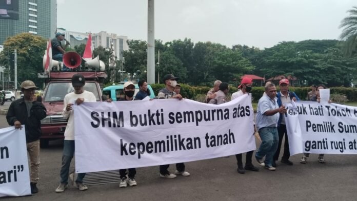 ACTUALNEWS.ID, Jakarta – Sekelompok warga, bersama kuasa hukum Aloysius Abi dan ahli waris Nico Mamesah, menggelar aksi protes di depan Kementerian Agraria dan Tata Ruang/Badan Pertanahan Nasional (ATR/BPN) serta di patung kuda jalan merdeka Selatan Jakarta. Mereka menuntut Presiden Prabowo Subianto untuk menyelidiki dugaan penyalahgunaan wewenang oleh BPN Kabupaten Bogor, yang memberikan Sertifikat Hak Guna Bangunan (HGB) kepada PT Kencana Jaya Properti Agung, anak perusahaan PT Summarecon Tbk.