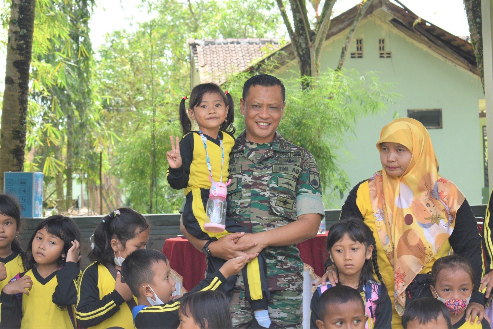 Bak seorang ayah kandung, Kolonel Yudha saat itu refleks menggendong salah satu siswi TK tersebut, tanpa canggung dan sumringah si anak menerima gendongan sang Kolonel, begitupula siswa siswi TK lainnya turut mengerubungi sang Komandan.
