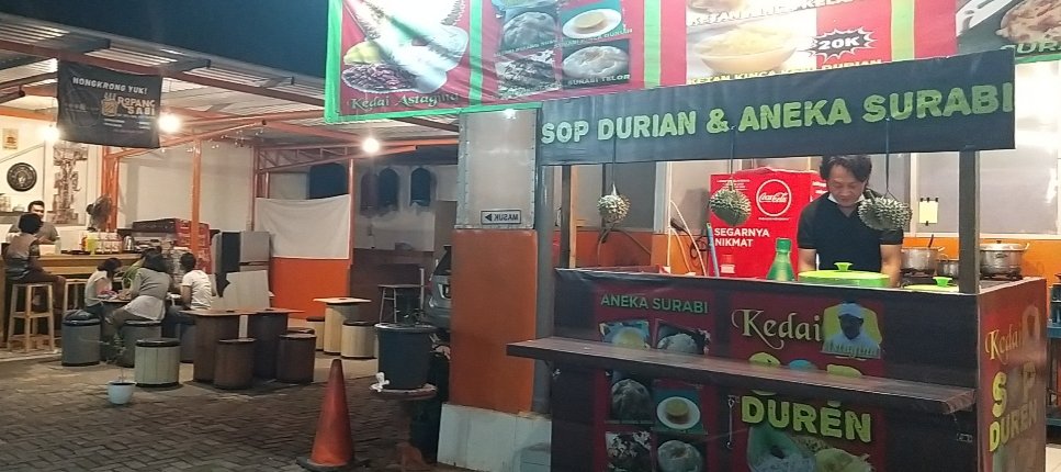 Dilihat dari lokasinya yang strategis, kata Teddy sangat pas buat nongkrongnya anak muda dan keluarga. Meski hanya terdapat belasan kios kuliner, tapi tak melepas suasananya yang begitu menggoda. Hal itu dapat diliat pas di depan sebelah kanan kedai Astagina sop durian dan aneka surabi Bandung milik Teddy Loning terdapat cucian mobil ‘Polish Line Auto Detailing’, dan parkiran yang cukup luas.