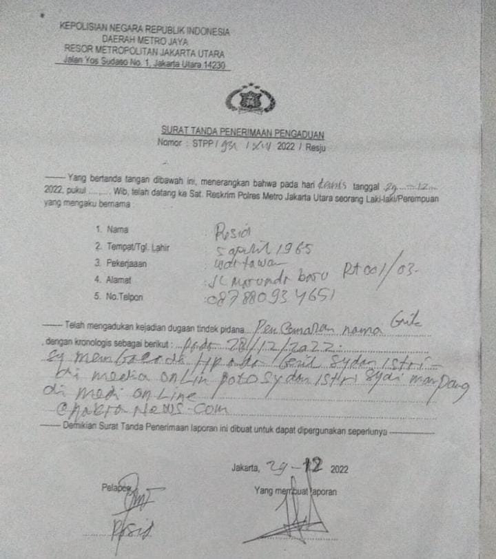ACTUALNEWS ID, Jakarta ,- Rosid Kabiro Online Jaya Posnews laporkan Media Online Cakranews Ke Polres Jakarta Utara, Kamis, 10 Januari 2023. Peristiwa pelapora ini dibenarkan Rosid.