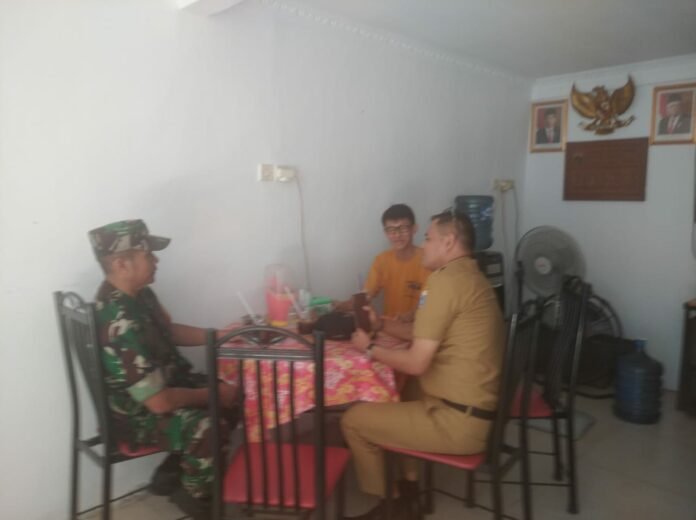 ACTUALNEES.ID Kodam Jaya Jakarta – Anggota Koramil 02/TB Kodim 0503/JB Serka Nurhasan melaksanakan komunikasi sosial (komsos) dengan Ketua RW 02 Lim Kim Tjhuan dan Kasie Ekbang Reik Hasyim.