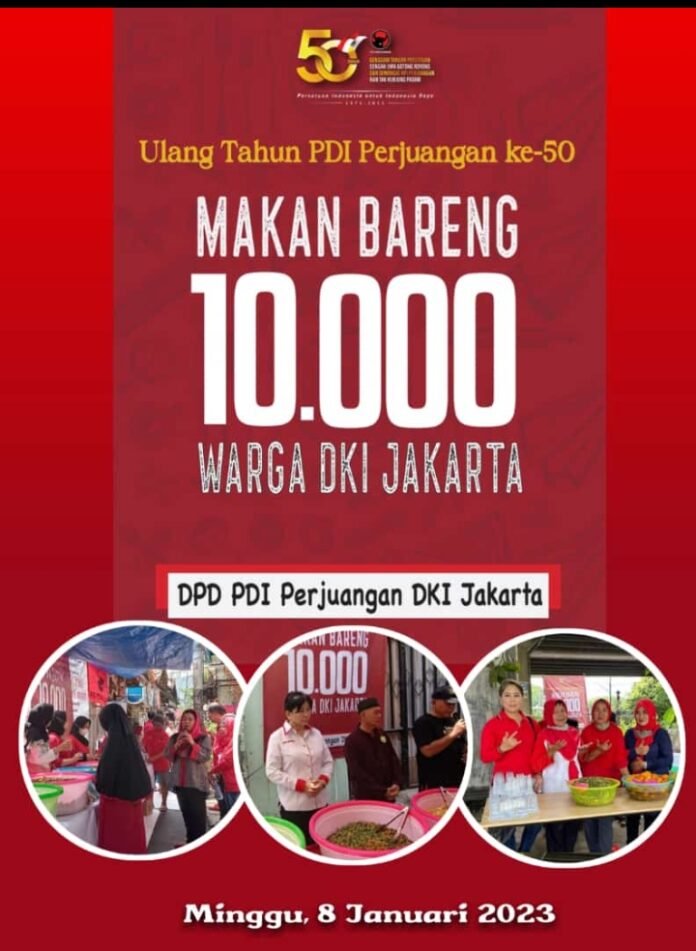 ACTUALNEWS ID, Jakarta – Untuk menyambut hut pdi perjuangan ke 50 yang diadakan di kemayoran jakarta dapat dipastikan meriah. Kemeriahan itu tampak setelah keluar intruksi dari ketum pdi perjuangan harus dekat dan bersama sama dengan rakyat baik susah, sedih maupun senang.