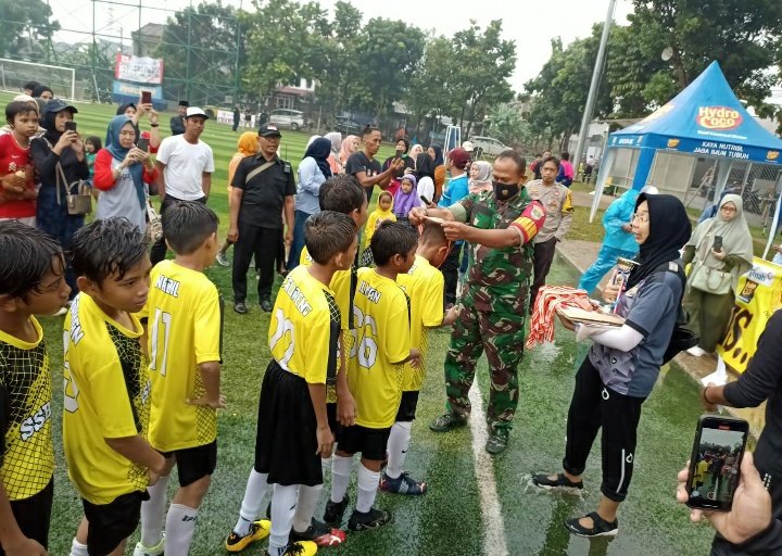 Sementara itu Danramil 07/Limo Kapten (Inf) Poegoeh Ary Bowo yang berkesempatan hadir di lokasi Turnamen menyampaikan ucapan, “Terima kasih kepada Yayasan BIG atas kesediaan tempat, terima kasih juga untuk Ketua Panitia atas kepercayaan dan terpilihnya sebagai tempat pelaksanaan kompetisi atau Turnamen Sepak Bola Junior Nasional ini. Tentunya kami turut mengapresiasi dan sangat bangga kepada seluruh kesebelasan yang sudah berjuang dibawah terik matahari bahkan di guyur hujan deras, luar biasa. Mereka semua telah menunjukkan bagaimana yang muda yang berkarya dan layak mendapatkan acungan jempol. Semoga dari sini tumbuh Regenerasi Timnas Indonesia yang kelak mampu mengibarkan Bendera Merah Putih di kancah dunia,” tutup Danramil 07/Limo dengan Bangga.