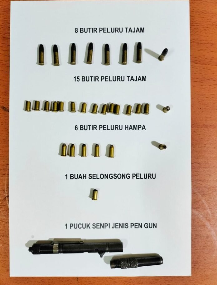 “Selain senpi jenis pen gun, didapati juga sejumlah amunisi yakni, 23 butir peluru tajam 22mm, 6 butir peluru hampa dan satu selongsong peluru,” jelasnya.
