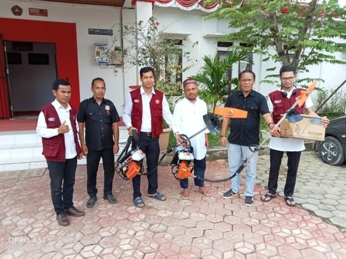 Memanfaatkan kunjungan silaturrahmi ini, AKP Syafruddin menyerahkan bantuan 2 unit mesin pemotong rumput.