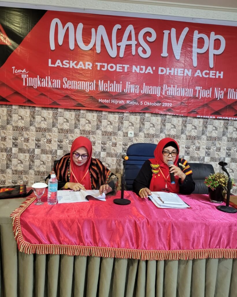 Melalui Munas IV PP Laskar Tjuet Nyak Dhien Aceh dilangsungkan pemilihan ketua umum yang baru mengingat ketua umum sebelumnya telah wafat. Ketua Umum terpilih yakni DR. Harbiyah A Gani.