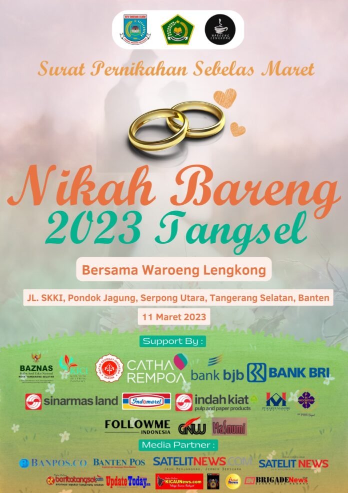 ACTUALNEWS.ID, Tangerang Selatan – Sebanyak 22 pasangan laki-laki dan perempuan asal Kota Tangsel telah mengikuti Nikah Bareng yang bertempat di warung lengkong.Sabtu, (11/3/2023)
