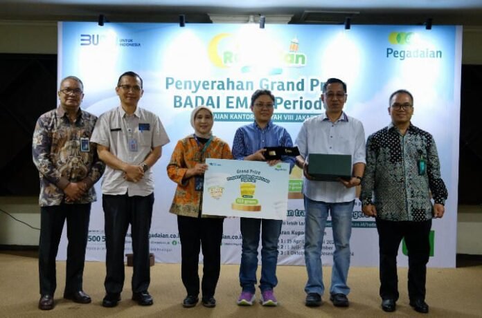 ACTUALNEWS.ID Depok, Pegadaian Kantor Wilayah VIII Jakarta 1 Menyerahkan hadiah grand prize badai emas periode 3 dalam rangkaian kegiatan festival Ramadan dan seminar emas Pegadaian kepada para nasabah yang diselenggarakan di Perpustakaan Balaikota Depok pada 4 Maret 2025.