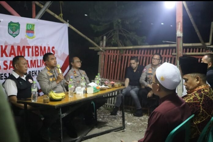 ACTUALNEWS.ID, Kabupaten Bekasi- Kapolres Metro Bekasi, Kombes Pol Twedi Aditya Bennyahdi, mengadakan kegiatan Ngopi Kamtibmas di Pos Satkamling, Desa Lambangsari, Kecamatan Tambun Selatan, Kabupaten Bekasi. Acara yang berlangsung pada Rabu (07/08/2024) malam.