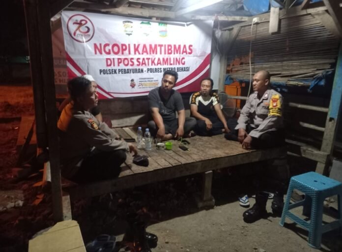 ACTUALNEWS.ID, Pebayuran – Dengan mengedepankan pendekatan humanis, Polsek Pebayuran melaksanakan kegiatan Ngopi Kamtibmas di Satkamling Kampung Sayuran RT 02/02, Kelurahan Kertasari, Kecamatan Pebayuran. Kegiatan yang dimulai pukul 20.00 WIB ini dipimpin oleh Kanit Samapta Polsek Pebayuran, Aiptu Endang Darmadi bersama Bhabinkamtibmas Kelurahan Kertasari, Bripka Tri Kurniawan, dan dihadiri oleh warga setempat, Minggu 15/12/24.