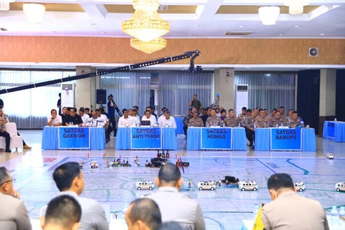 ACTUALNEWS.ID, Jakarta – Polri menggelar Tactical Floor Game (TFG) Operasi Terpusat Merdeka Jaya 2025, dalam rangka pengamanan rangkaian kegiatan kenegaraan hingga Pesta Rakyat HUT ke-80 Republik Indonesia. TFG digelar di Aula Gedung BPMJ Polda Metro Jaya, Kamis (14/8/2025), yang dipimpin Astamaops Kapolri Komjen Akhmad Wiyagus, Kakorlantas Polri Irjen Agus Suryonugroho hingga Kapolda Metro Jaya Irjen Karyoto.