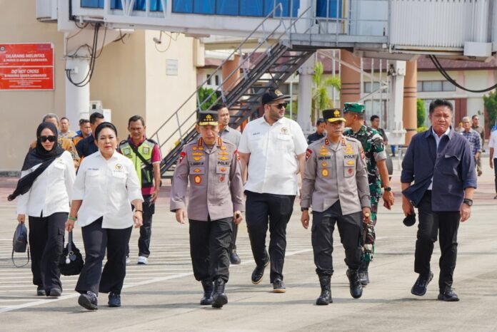 ACTUALNEWS.ID, OKU Timur – Kapolri beserta Ketua Komisi IV DPR RI, Menko Pangan, Kepala Badan Pangan Nasional, dan Dirut Bulog terpantau tiba di Mahmud Badaruddin II dari Palembang dilanjutkan menaiki helikopter Polri menuju Kab. OKU Timur, Prov. Sumsel pada Sabtu, 27 September 2025.