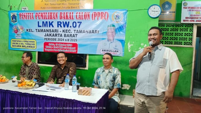 Menurut Ketua PPBC, Supardi setelah memeriksa dan memferivikasi semua berkas persyaratan, maka Amirullah ditetapkan sebagai calon tunggal LMK RW.07 Kelurahan Tamansari Kecamatan Tamansari Jakarta Barat.