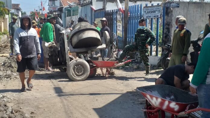 ACTUALNEWS.ID Surakarta, Walau di Hari libur pantang kendur Satgas TNI Manunggal Membangun Desa (TMMD) Sengkuyung II TA. 2023 Kodim 0735/Surakarta bersinergi dengan warga melaksanakan kegiatan kerja bakti berupa kegiatan penggalian Saluran air di RW. 7, 14 dan 15 kelurahan Serengan Kec. Serengan Surakarta. (23/7/2023)