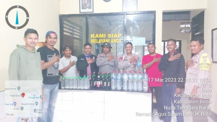 Jumat 17/03 23 Sekira pukul 20.00 wita Personel Polsek Bolo dipimpin Kapolseknya Iptu Nurdin menggerebek dan mengamankan Puluhan botol miras berbagai jenis