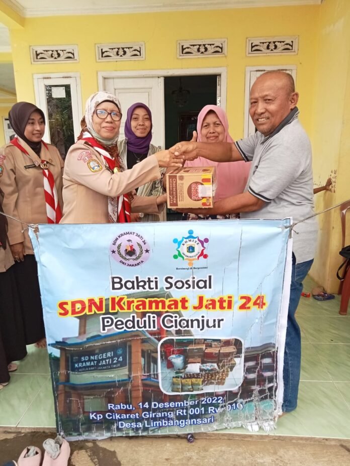 Peduli Cianjur, Keluarga Besar SD Negeri Kramat Jati 24 Jakarta Timur Salurkan Sembako Di Kp. Cikaret