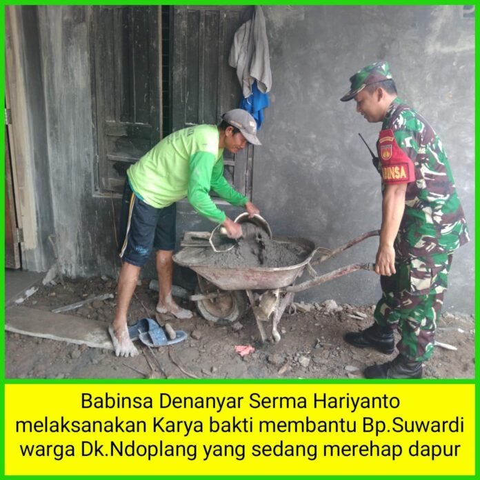 ACTUALNEWS.ID, Sragen – Selalu aktif membantu kesulitan masyarakat di wilayah binaanya, Serma Hariyanto Babinsa Desa Denanyar Anggota Koramil 10/Tangen Kodim 0725/Sragen melaksanakan giat Karya Bakti dapur milik warga Ibu Siwi di Ds.Denayar Kec.Tangen, Rabu ( 08/03/2023 )