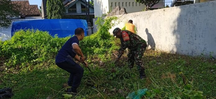 Peduli Kebersihan Lingkungan, Babinsa Joyotakan Bersama Perangkat Kelurahan Kerja Bakti