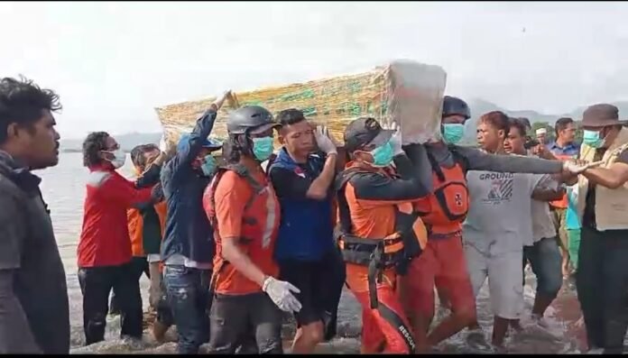 Aparat kepolisian dengan menggunakan speed boat Jumat 7 Februari membawa pulang jenazah dan bersandar di Dermaga Tambang Pasir besi desa Oi Tui Wera.