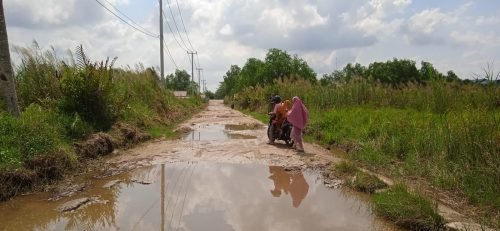 Jalan Terusan Mas, yang menuju Pelabuhan Parit 21 mengalami kerusakan yang cukup serius, terlihat banyaknya lubang dan genangan air pada ruas jalan sangat memprihatinkan.