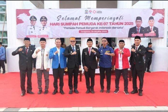 Oleh: bupati dan wakil Bupati Jeneponto H Paris Yasir SE MM, Islam Iskandar SH MH, bersama pemuda-pemudi Jeneponto., Selasa 28 Oktober 2025.