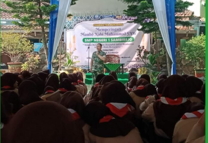 ACTUALNEWS ID, Sragen, Seluruh warga negara harus memiliki semangat, kesadaran dan kemampuan Bela Negara. Kita harus mempunyai daya tangkal dan ketangguhan dalam menghadapi situasi yang semakin berkembang pesat dan kompleks di segala bidang, oleh karena itu Pelda Muhlisin Bati Tuud Koramil 08/Sambirejo Kodim 0725/Sragen melaksanakan Bin Wanwil dengan melaksanakan giat pemberian materi Pendidikan Bela Negara dan Cinta Tanah Air di SMPN 1 Sambirejo, Jum’at ( 29/09/2023 )