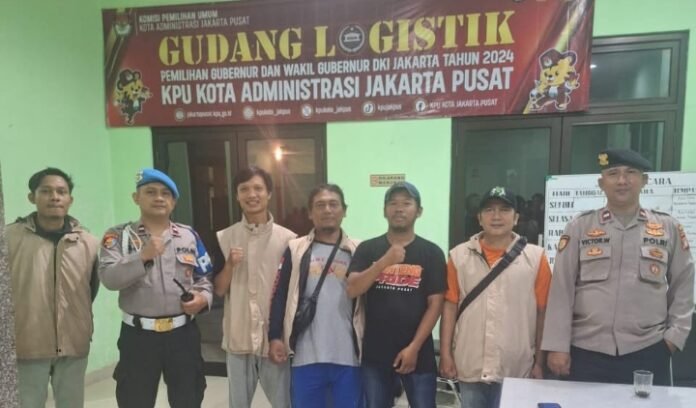 ACTUALNEWS ID, Jakarta Pusat – Aipda Victor Wahyudi dan Aipda H. M. Adhy pengamanan giat Logistik Pilkada DKI Jakarta 2024 di Kantor PPK Kecamatan Menteng Jalan Pegangsaan Barat Menteng Jakarta Pusat. Minggu (17/11/2024)