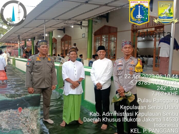 ACTUALNEWS.ID, Jakarta – Polsek Kepulauan Seribu Utara bersama Personel Pospam Operasi Kepolisian Terpusat “Ketupat Jaya-2023” melaksanakan kegiatan pengamanan pelaksanan sholat Idul Fitri 1444 H di 6 pulau permukiman, Sabtu (22/04/2023).