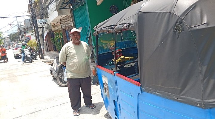 Meski hanya seorang supir bajaj Roji (51) yang biasa mangkal sekitar jelambar baru tetep semangat mencari rezeki.