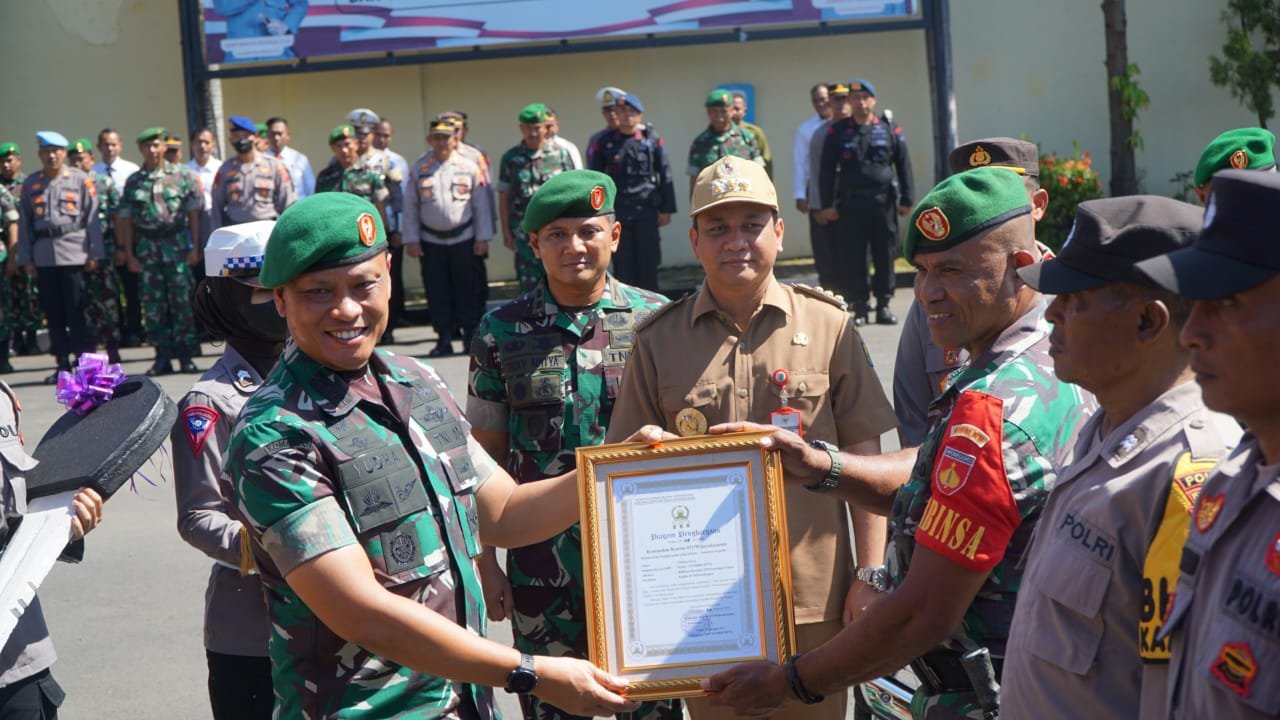 “Karenanya, TNI dan Polri, dalam menghadapi pesta demokrasi mendatang, harus kompak dan solid, bersama-sama menjaga wilayah yang kondusif”, sambungnya.