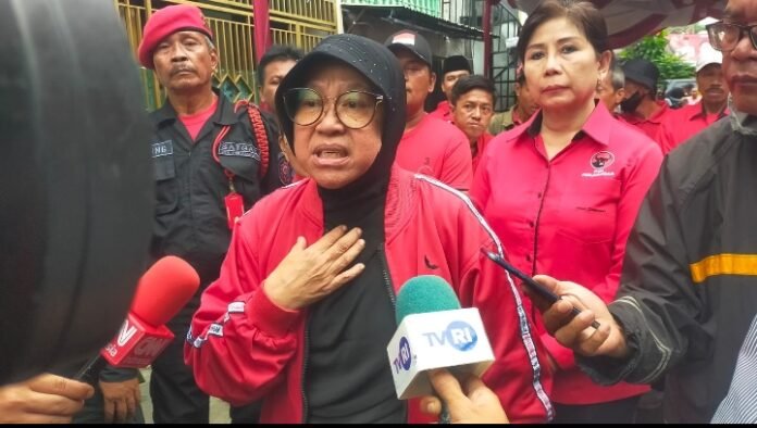 ACTUALNEWS.ID, Jakarta – Tri Rismaharini selaku DPP PDI Perjuangan mengadiri perayaan Hut PDI Perjuangan ke-51 di Kali Anyar, Tambora Jakarta Barat. Kehadiran Mensos (Mentri Sosial) tersebut langsung di sambut sekita 250 warga masyarakat Kali Anyar.