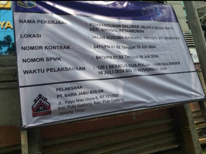 ACTUALNEWS.ID, Jakarta – Pembangunan saluran dijalan kusuma raya tepatnya di komplek duta mas rw 05, kelurahan wijayakusuma, kec grogol petamburan jakarta barat sedang berjalan.
