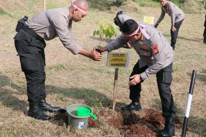 “Kita lakukan penyelamatan bumi melalui kegiatan Polisi peduli penghijauan. Kita awali di lingkungan Sekolah Polisi Negara Polda Metro Jaya dengan menanam sebanyak 5.000 pohon kemudian 10.000 pohon lainnya ditanam di 10 wilayah Polres Jajaran Polda Metro Jaya, masing-masing wilayah menanam 1.000 pohon. Pohon yang ditanam seperti pohon jati, sengon, dan buah-buahan,” ungkap langgeng, Jumat (18/8/2023).