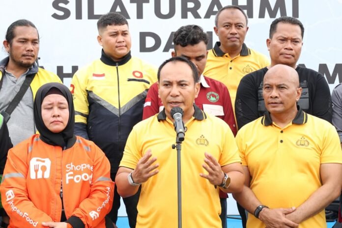 ACTUALNEWS.ID, Pekanbaru – Suasana hangat dan penuh kebersamaan tampak di halaman Mapolda Riau, Selasa (9/9/2025). Ratusan pengemudi ojek online (ojol) berkumpul bersama jajaran Kepolisian Daerah (Polda) Riau untuk memperkuat silaturahmi melalui kegiatan olahraga dan makan bersama serta berbagai kegiatan sosial.