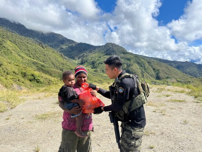 ACTUALNEWS.ID, Puncak Jaya — Personel Satgas Operasi Damai Cartenz-2025 melaksanakan kegiatan humanis dengan membagikan bantuan sembako kepada mama-mama Papua serta makanan ringan untuk anak-anak di Kampung Wuyuneri, Distrik Mulia, Kabupaten Puncak Jaya, Minggu (11/5).