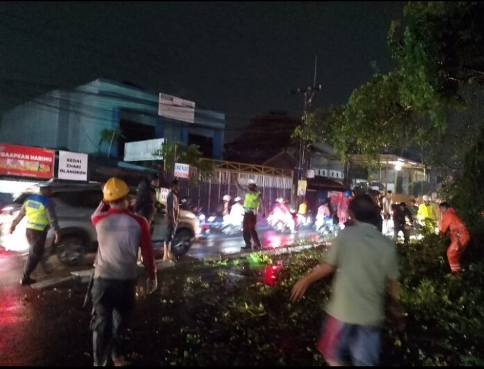 Piket Patroli Polsek Sukmajaya Segera Bertindak di Lokasi Kecelakaan Pohon Tumbang