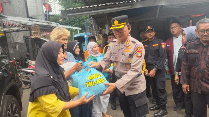Kegiatan tersebut dipimpin langsung oleh Direktur Binmas Polda Metro Jaya, Kombes Pol Harry, yang secara simbolis menyerahkan bantuan sembako kepada warga. Total sebanyak 100 paket sembako dibagikan kepada masyarakat yang membutuhkan.