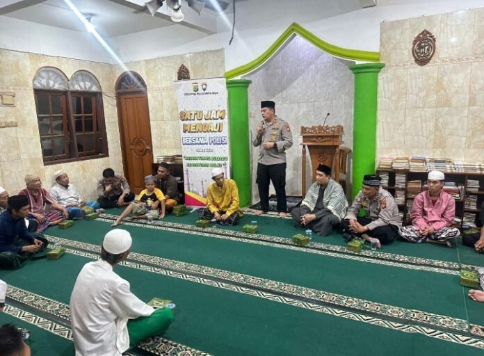 ACTUALNEWS.ID, Jakarta – Polda Metro Jaya menggelar program ‘Satu Jam Mengaji Bersama Polisi’ di Masjid Jami Al Istiqomah jln. Menteng Tenggulun Rt. 11/1 Kel. Menteng Kec, Menteng Jakarta Pusat. Program ini digelar untuk mengajak masyarakat memakmurkan masjid dengan tema “Harkamtibmas Berbasis Kemakmuran Masjid”. Kegiatan ini digagas oleh Kapolda Metro Jaya Irjen Pol. Karyoto yang bertujuan untuk menjaga silaturahmi antara aparat kepolisian dengan masyarakat. Senin (5/02/24).