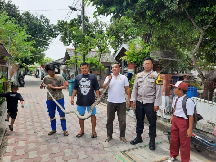 ACTUALNEWS.ID, Kepulauan Seribu – Bhabinkamtibmas Pulau Lancang, Polres Kepulauan Seribu, Brigadir Tulus Hidayat bersama warga berhasil mengevakuasi seekor ular sanca sepanjang 2,5 meter yang ditemukan di pekarangan rumah warga, Selasa (04/02/2025).