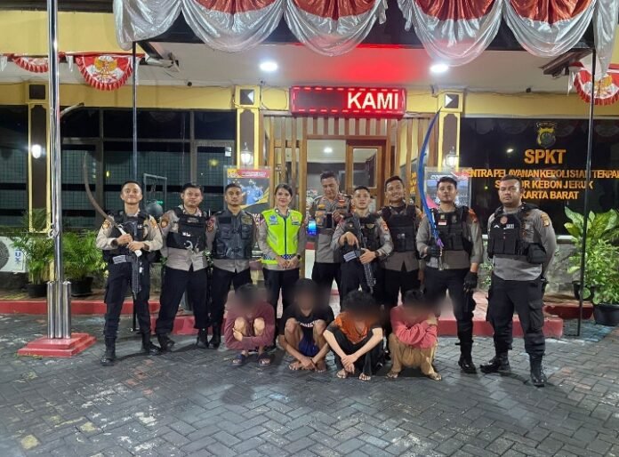 ACTUALNEWS.ID, Jakarta Barat – Tim Patroli Perintis Presisi Polres Metro Jakarta Barat berhasil mengamankan empat remaja yang diduga hendak melakukan aksi tawuran pada Minggu, 18/8/2024, sekitar pukul 04.00 WIB pagi.