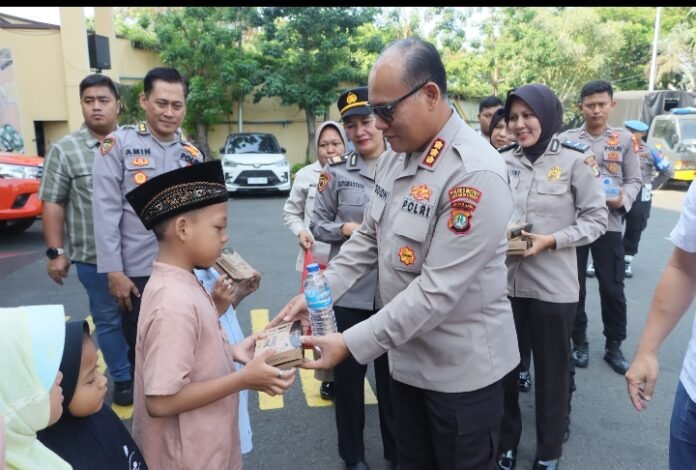 ACTUALNEWS.ID, JAKARTA – Kapolres Metro Jakarta Utara, Kombes Pol Gidion Arif Setyawan membagikan makan siang gratis bagi anak yatim dan pedagang makanan di sekitaran markas Polres Metro Jakarta Utara, Kamis (5/9).