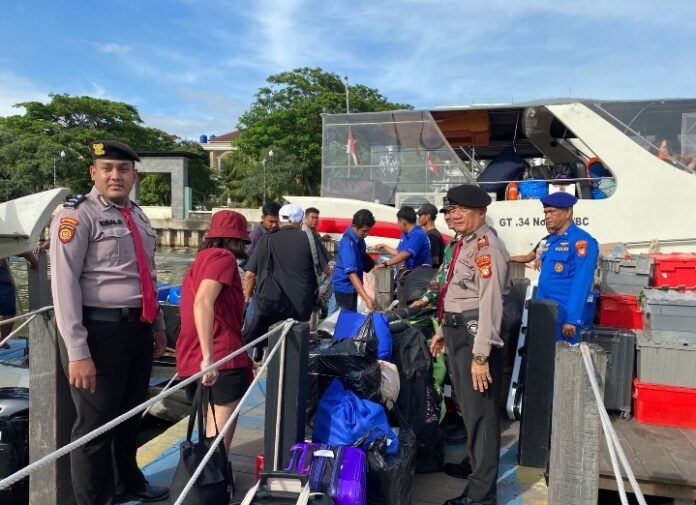 ACTUALNEWS.ID, Jakarta – Polres Kepulauan Seribu melakukan pengamanan keberangkatan wisatawan yang hendak menuju Kepulauan Seribu melalui Dermaga Marina Ancol, Jakarta, pada Minggu (05/01/2025). Kegiatan pengamanan ini dipimpin langsung oleh AKP Asep Romli selaku Perwira Pengawas (Pawas).