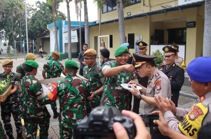 ACTUALNEWS.ID, Jakarta – Polres Kepulauan Seribu mendapatkan kejutan istimewa dalam rangka memperingati Hari Ulang Tahun Polri yang ke-78. Kunjungan kejutan ini diberikan oleh Dandim 0502 Jakarta Utara yang diwakili oleh Danramil Kepulauan Seribu beserta anggota, serta Komandan Batalyon Arhanud 6/Rangkok beserta anggotanya. Acara berlangsung di Kantor Perwakilan Polres Kepulauan Seribu Marina Ancol pada hari Senin, 1 Juli 2024.