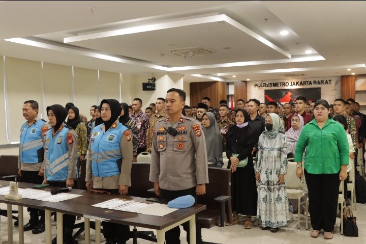 ACTUALNEWS.ID, Jakarta Barat – Polres Metro Jakarta Barat melaksanakan kegiatan penandatanganan pakta intergitas dan pengambilan sumpah panitia, peserta dan orang tua atau wali dalam seleksi penerimaan Calon anggota Polri Tahun Anggaran 2024 yang dilaksanakan di Aula lantai 2 Wirasatya pada Jumat (19/04).