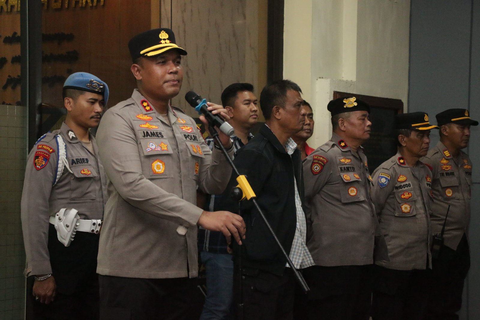 Dalam arahannya, AKBP James menyampaikan apresiasi atas semangat dan dedikasi para anggota yang tetap hadir melaksanakan tugas meskipun di tengah cuaca hujan dan berangin.